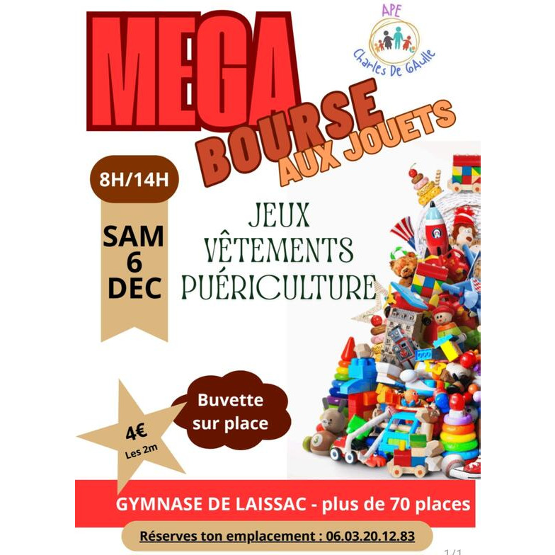 L'ape de l'école charles de gaulle de laissac organise sa bourse aux jouets annuelle qui à lieu au gymnase de laissac.