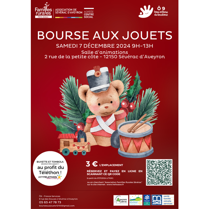 L'association familles rurales de sévérac d'aveyron organise sa traditionnelle bourse aux jouets ! Notre événement vise à favoriser l'économie circulaire sur notre territoire.