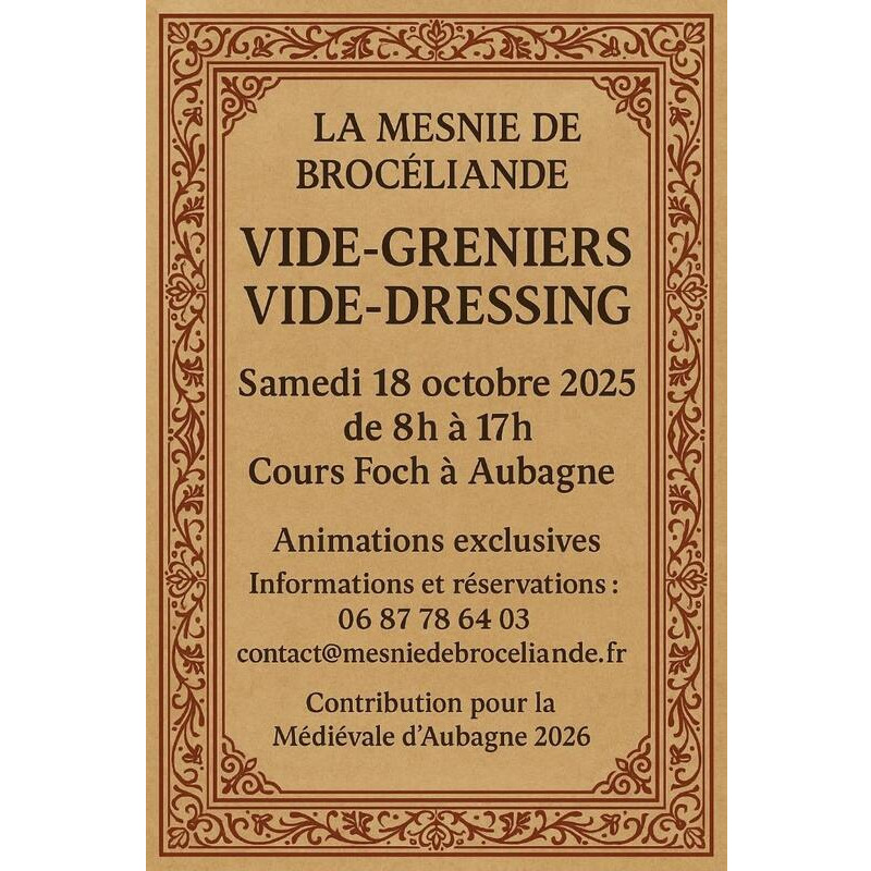 La mesnie de brocéliande propose un vide greniers et vide dressing place du maréchal foch (de 8h à 17h) dans le cadre de sa récolte de fonds.