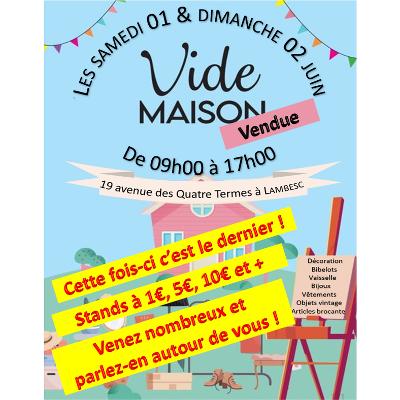La maison est vendue alors venez profiter des dernières bonnes affaires de la famille
