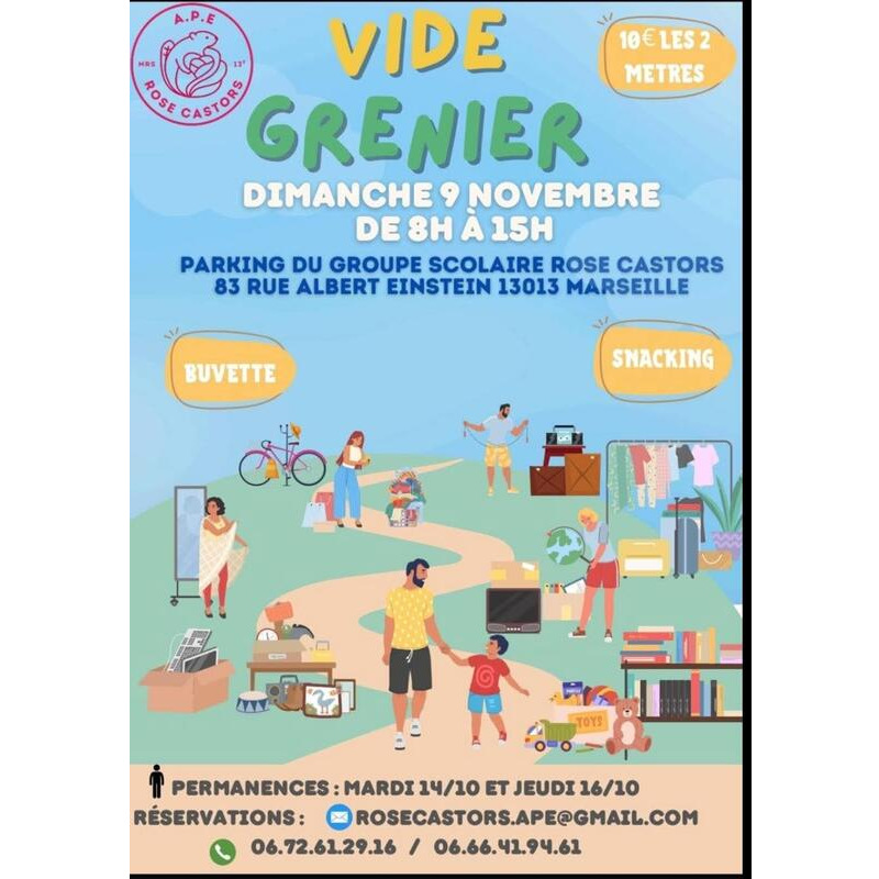 Vide grenier sur le parking de l'école rose castors avec la présence d'une buvette ( pizza, sandwichs, ...)