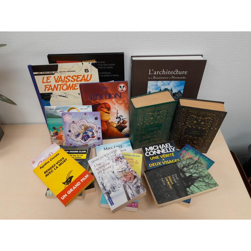 Les livres présentés sont en bon état et sont de tous types : romans, bd, littérature jeunesse, encyclopédies, livres anciens etc.
