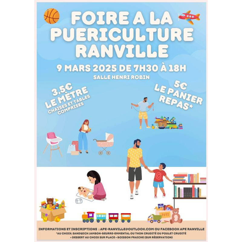 l'ape de ranville organise une foire à la puériculture dans sa salle des fêtes.