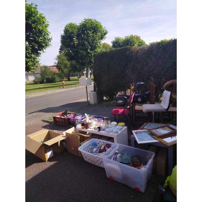 vide maison de : chaises de jardin métal, radio tsf, casier 4 cases ikea, livres, vaisselles, bibelots, dvd, plaques rallye, affiche antoine vitt encadrée, porte manteau mural, chaises rustiques, porcelaines, déco, vêtements et chaussures de marque, sacs, bijouterie fantaisie, rollers, combinaisons de plongée ou planche à voile courtes et longues, luminaires de billard, revues sport auto vintage, tracteur et remorque enfant, trottinette 3 roues, et divers bazars