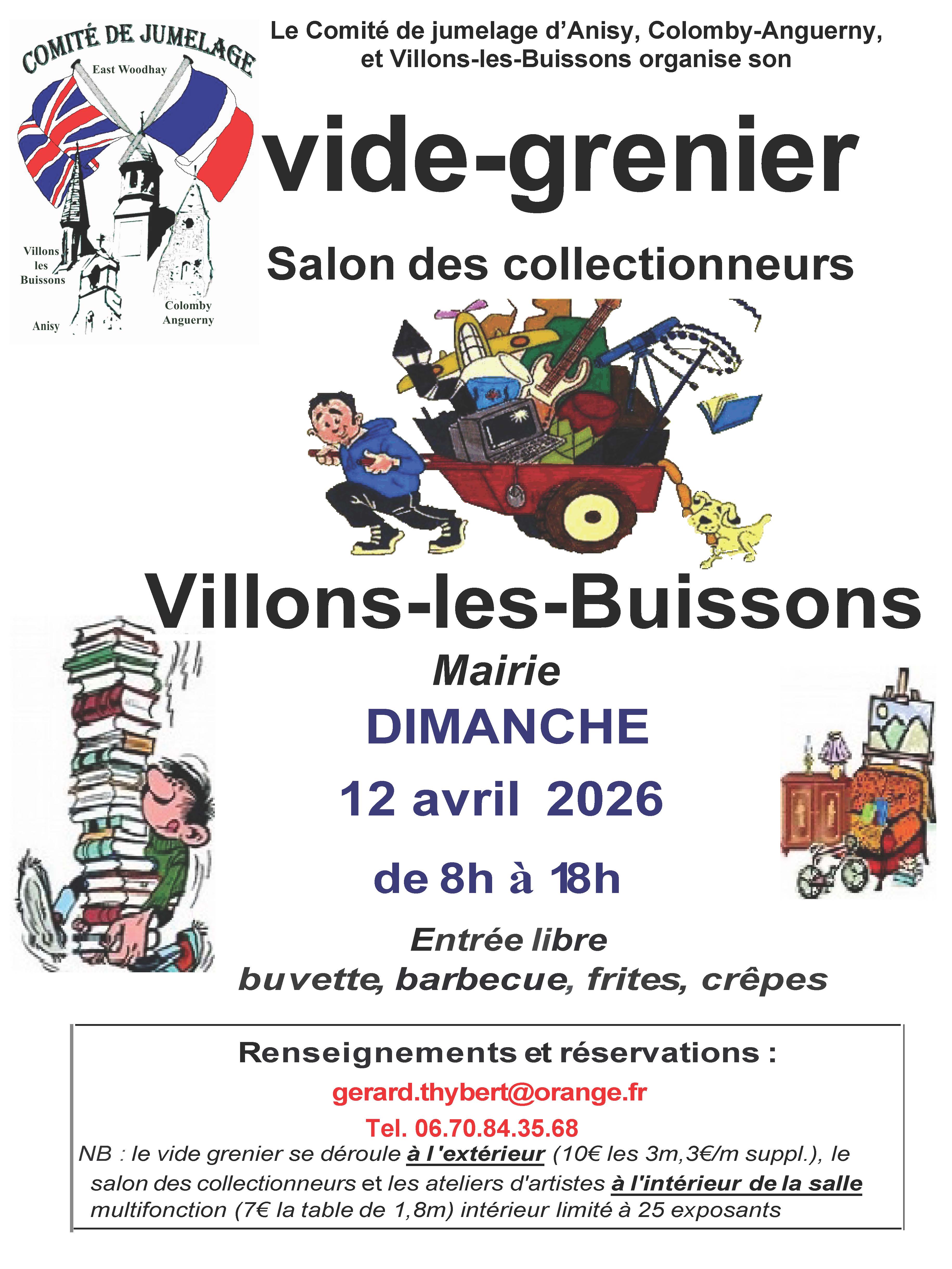 Vide grenier convivial autour de la Mairie de Villons les Buissons ainsi qu'un salon des collectionneurs à l'intérieur de la salle polyvalente