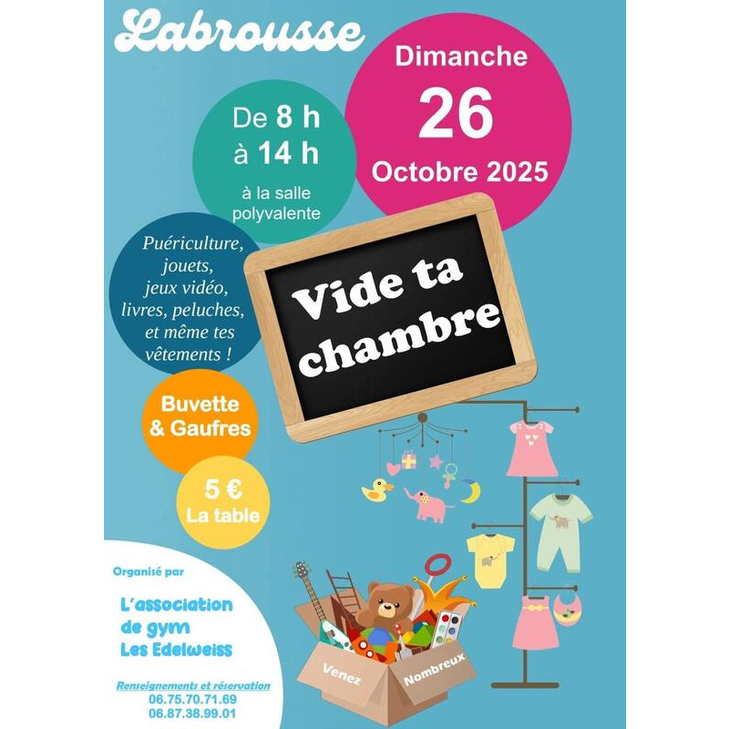 Vide ta chambre : puériculture, jouets, jeux vidéo, livres, peluches, vêtements.