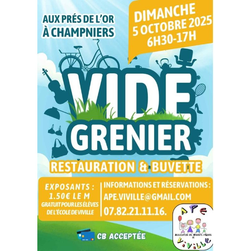 l'ape de viville organise son vide-greniers le dimanche 5 octobre 2025 aux prés de l'or dans le bourg de champniers.