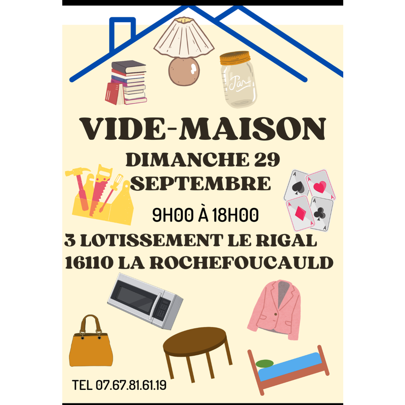 Nous ouvrons les portes d'une élégante maison pour un vide-maison le dimanche 29 septembre de 9h00 à 18h00 à la rochefoucauld , 3 lotissement le rigal.