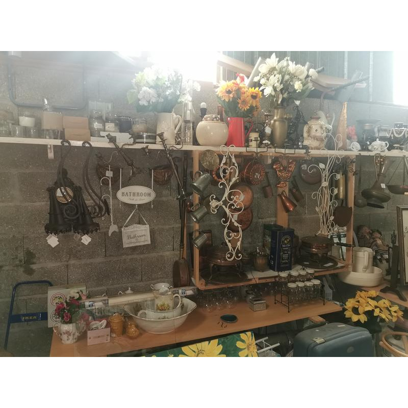 Divers articles ménagers : lampes, luminaires, tableaux, cuivres, etc., gros articles : lits, armoires, etc.