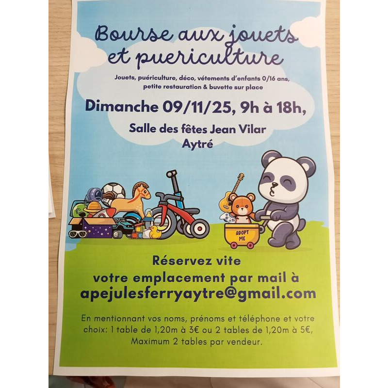 Première bourse aux jouets organisée par l'association des parents d'élèves de l'école jules ferry d'aytre.