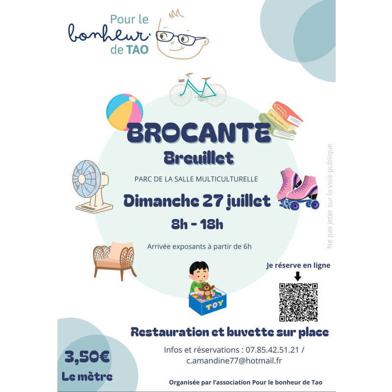 Vide grenier organisé par l’association pour le bonheur de tao dimanche 27 juillet.
