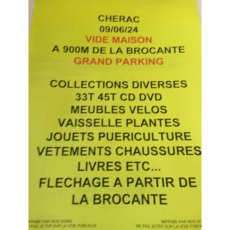 meubles, vélos, vaisselle, vêtements, jouets, livres, disques cd, dvd, etc