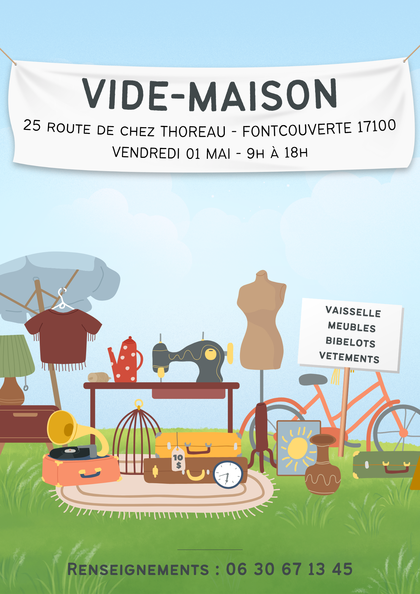 vente de bibelots, meuble, vaisselle, vêtements