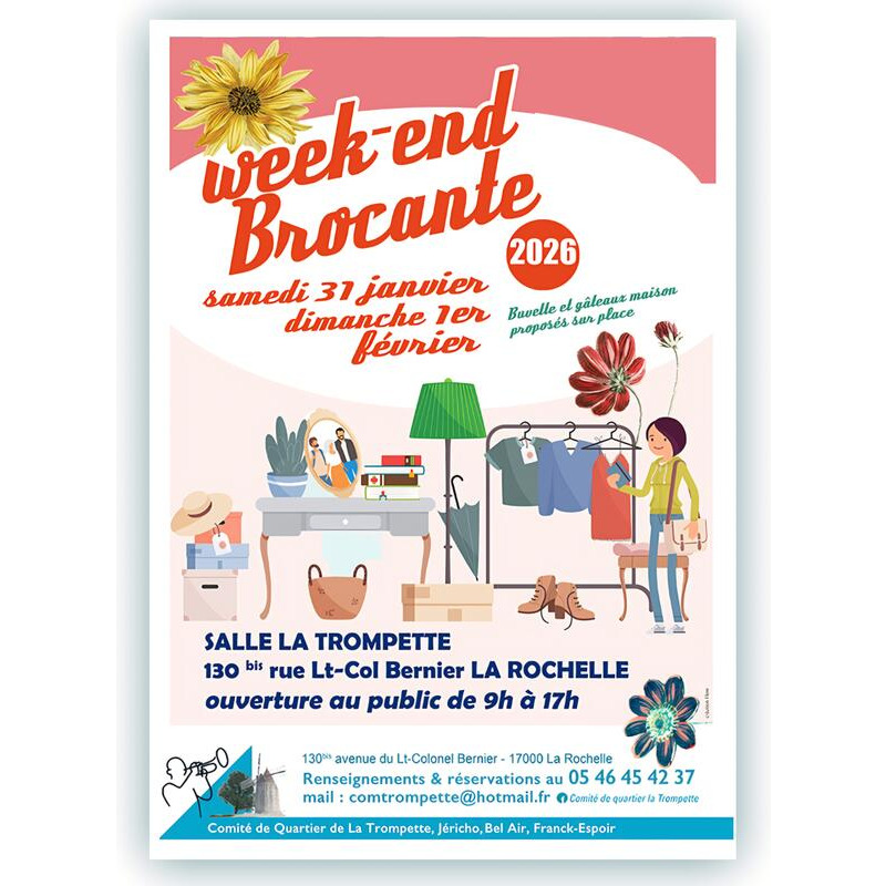 Brocante à entrée libre, se déroulant sur un week-end à la salle de la trompette. Vente au déballage de particuliers à particuliers. Une buvette ainsi que des gâteaux faits maison seront proposés à la vente.