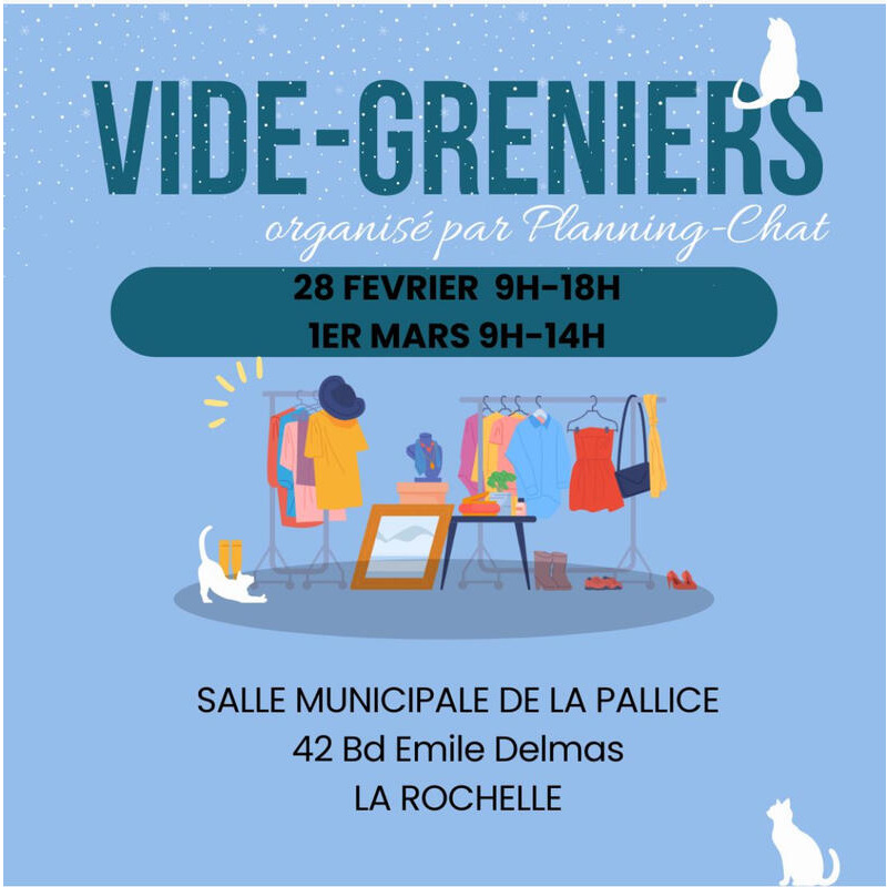 Vide greniers en salle avec parking gratuit autour.