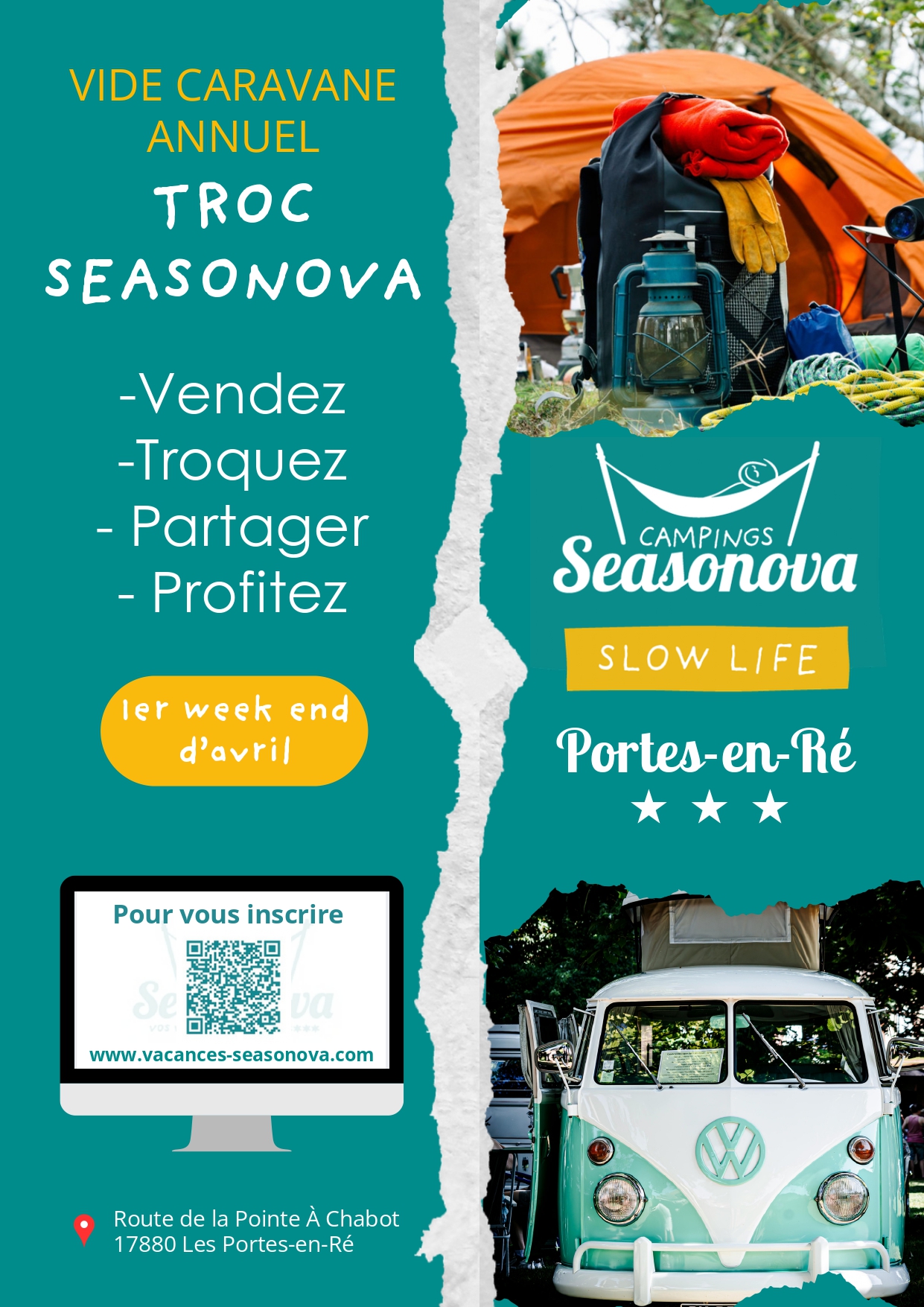 📅 Vendredi 4 & Samedi 5 avril 2026 – 9h à 18h 📍 Camping Seasonova Les Portes-en-Ré – Île de Ré (17)