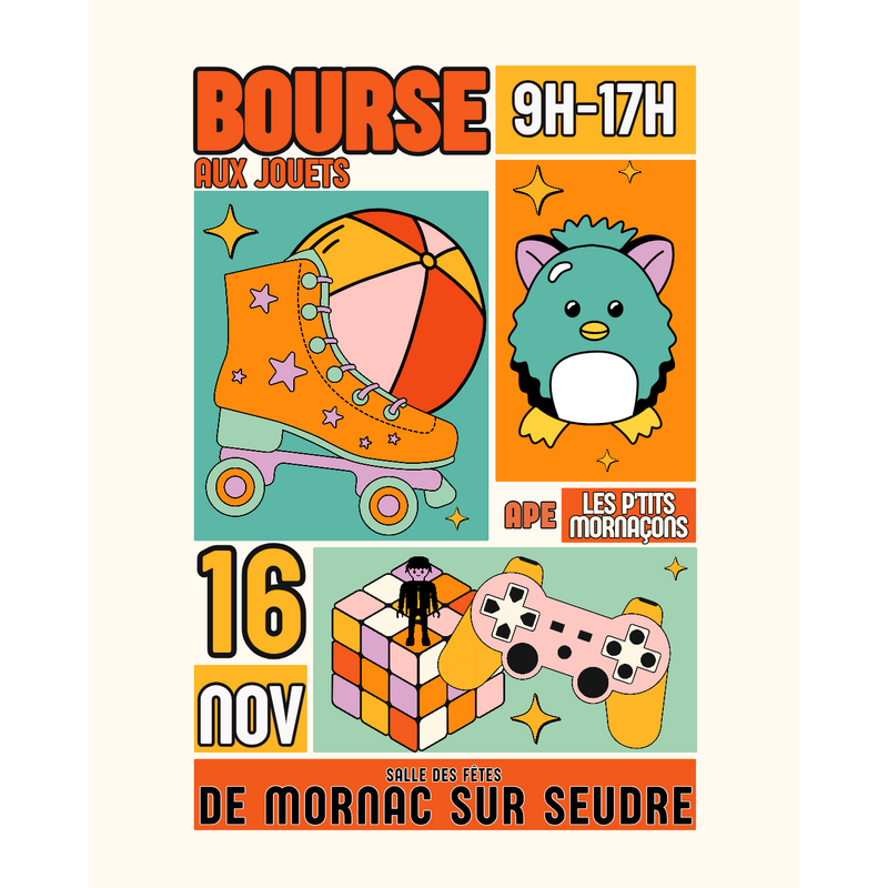 Bourse aux jouets de 9h à 17h organisée par l'association des parents d'élèves de mornac-sur-seudre