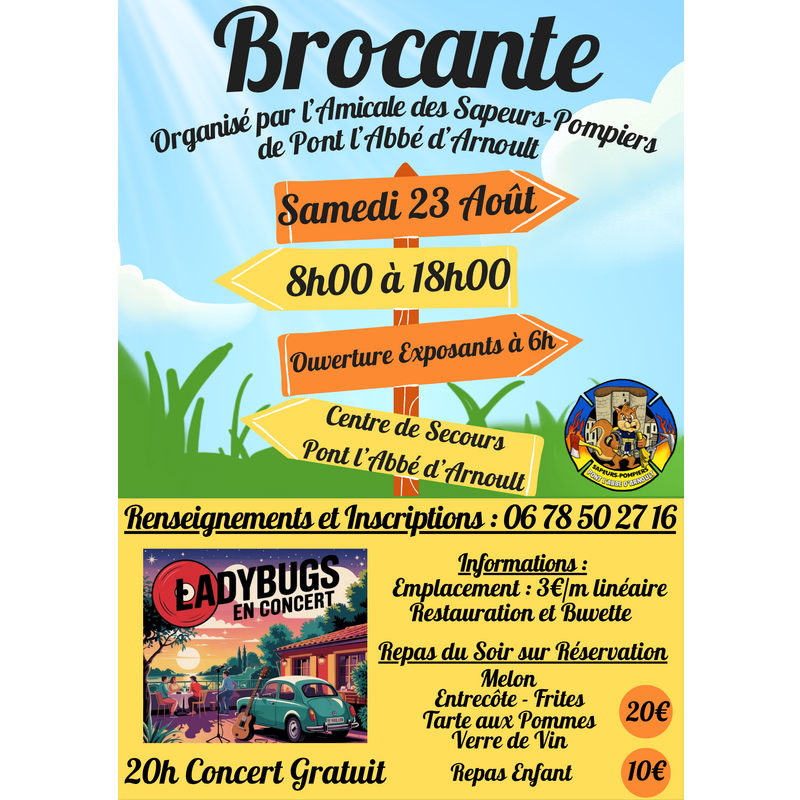 Brocante organisée par l'amicale des sapeurs pompiers de pont l'abbé d'arnoult de 08h à 18h00