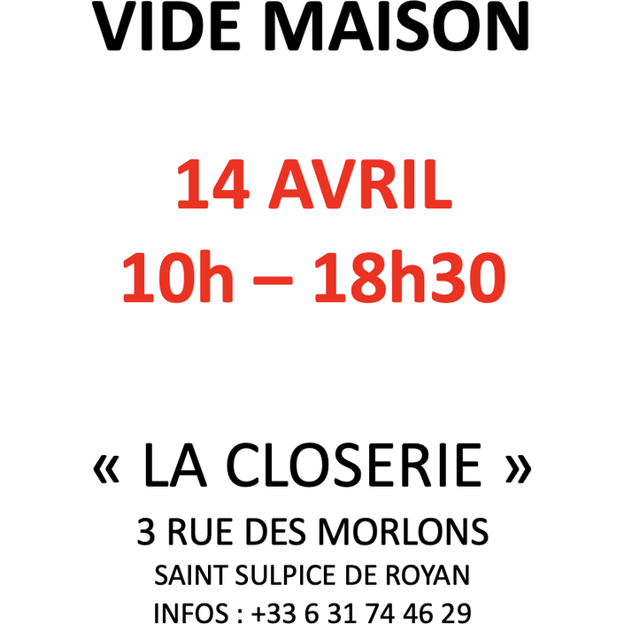 - vide maison - 14 avril 2024 de 10h – 18h30