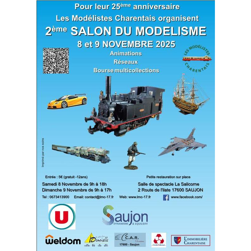 Les samedi 8 et dimanche 9 novembre 2025 nous organisons notre 2ème salon du modélisme à saujon (17600) – la salicorne.