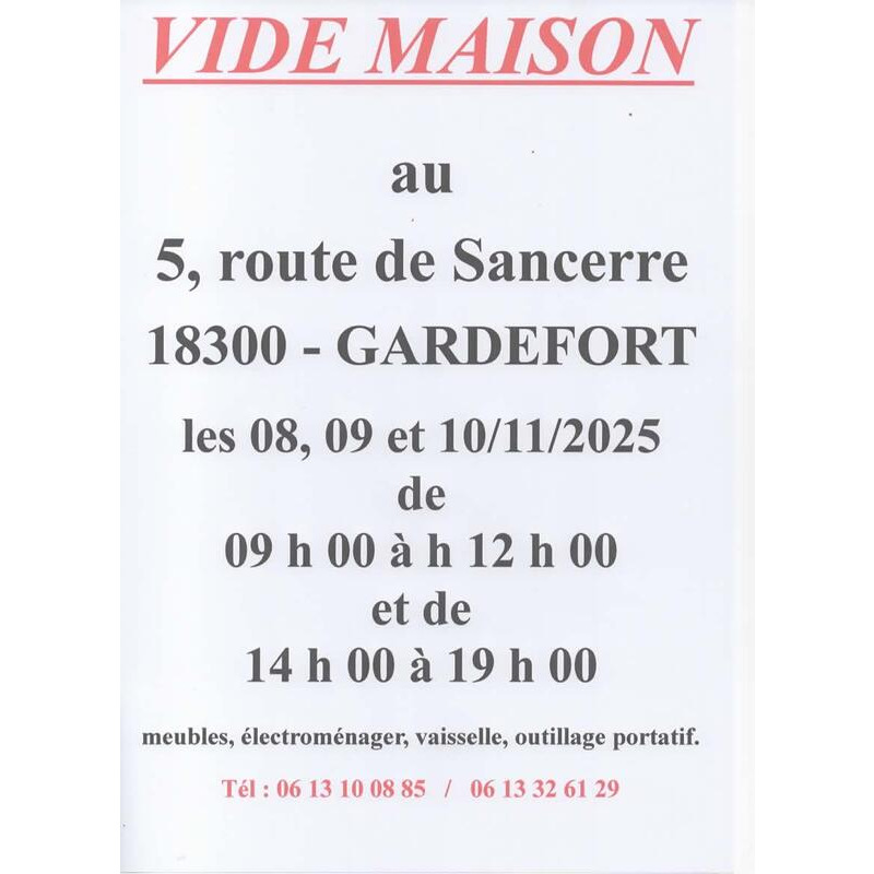 Vente de meubles, électroménager, vaisselle, outillage portatif.