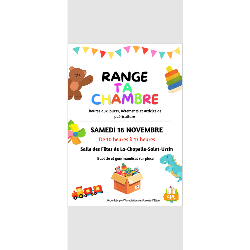 Bourse aux jouets, vêtements et articles de puériculture.