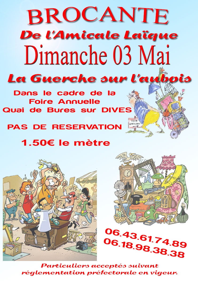 Bonjour, l'Amicale Laique la Guerche Handball organise, son vide grenier annuel le dimanche 03 Mai 2026.