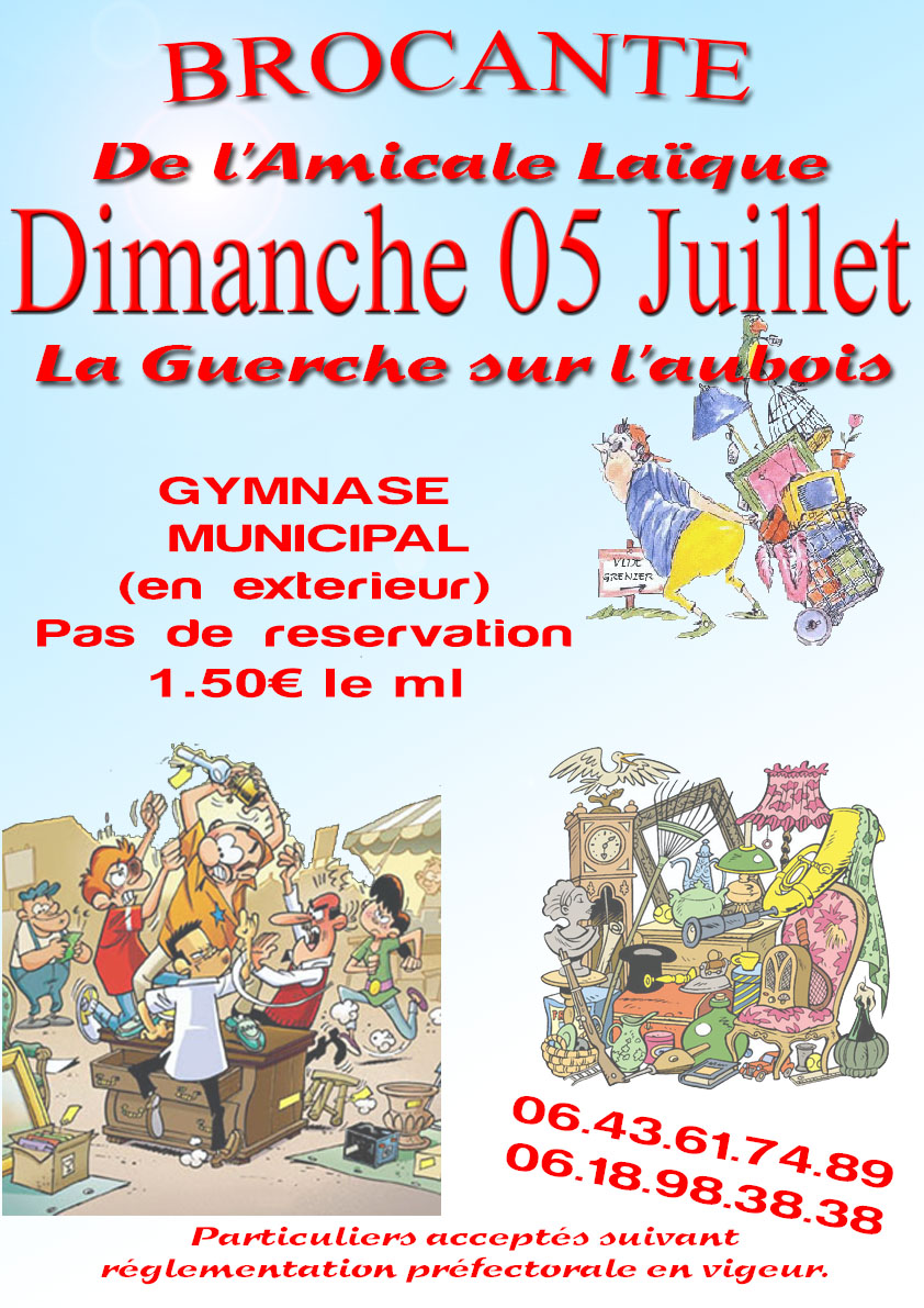 Bonjour, l'Amicale Laique la Guerche Handball organise, son vide grenier annuel le dimanche 05 Juillet au Gymnase (en extérieur).