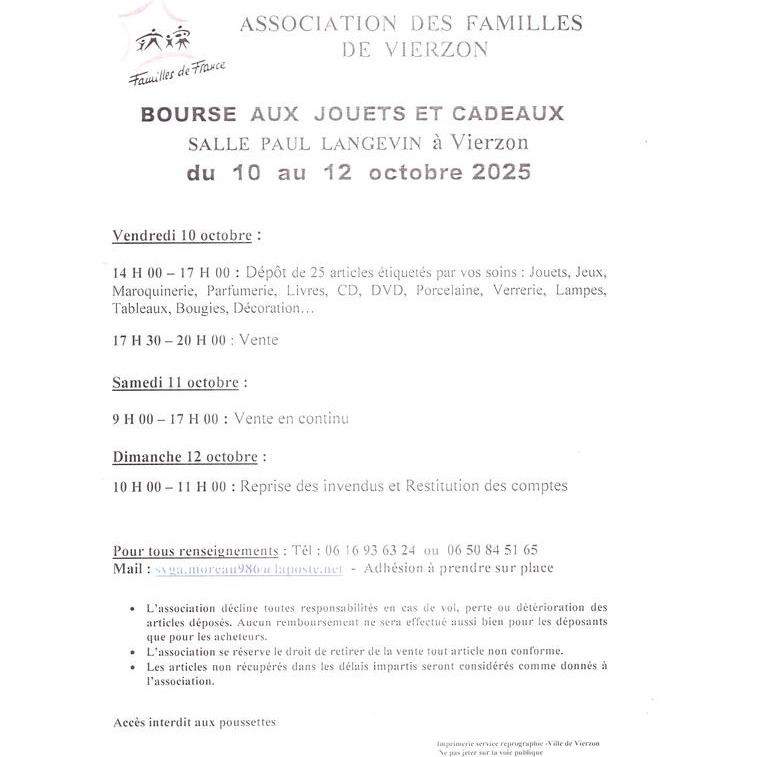 L'association des familles de vierzon vous propose des jouets, des jeux et des cadeaux à prix réduit pour toute la famille.