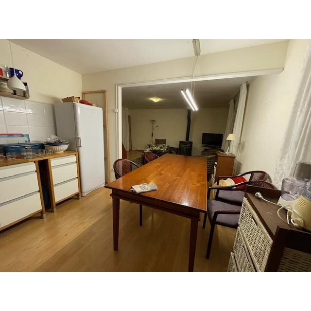 Vide maison dans le garage avec des meubles, fournitures de cuisine, vaisselles, bibelots. Réfrigérateur, congélateur, lave vaisselle, canapé-lit, outillages.