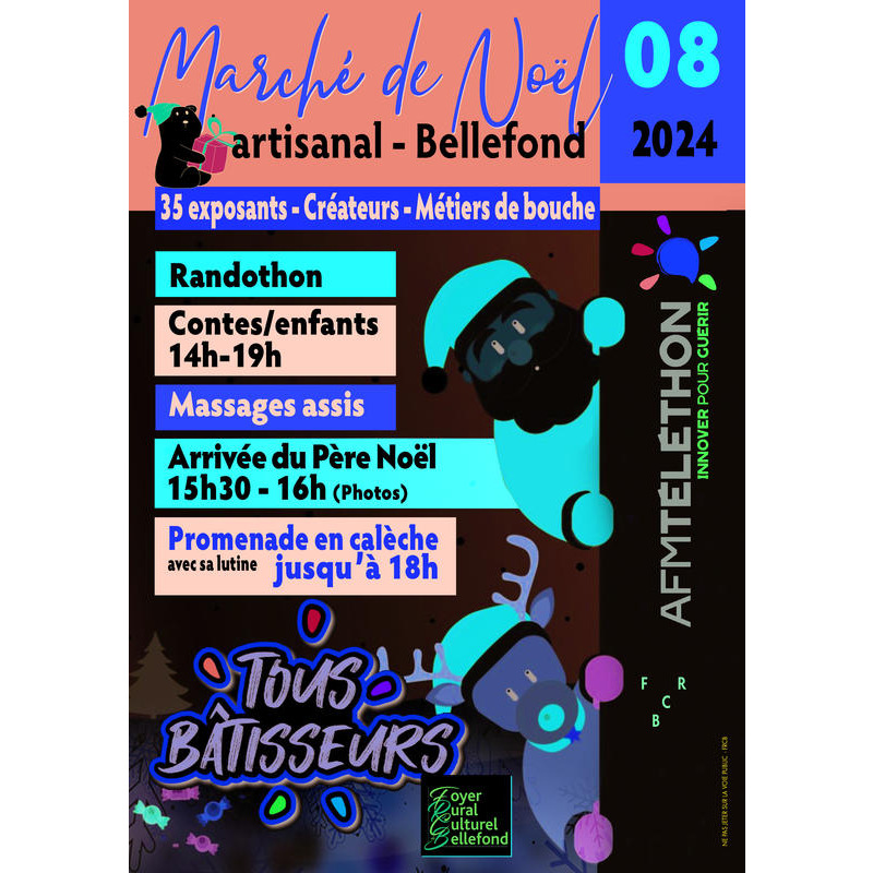 nous vous accueillons avec plaisir pour partager une journée conviviale, effectuer vos derniers achats de noël, marcher autour de bellefond avec notre randothon, se détendre avec des massages assis, se restaurer avec une tartiflette et apprécier vin chaud, escargots, soupe, gaufres, crèpes, barbe à papa, ...