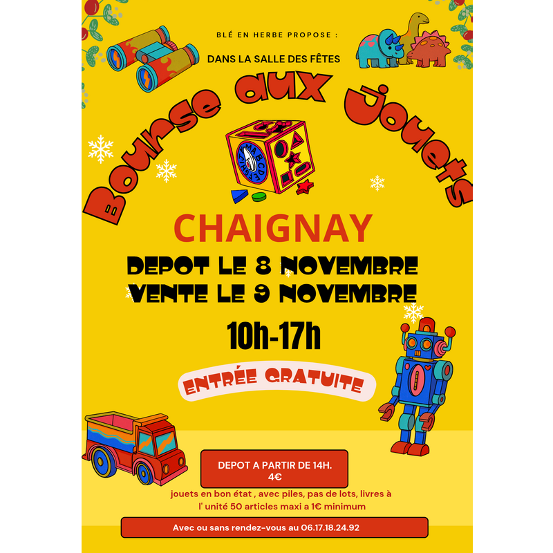 Les personnes déposent leurs jouets le samedi 8 novembre, de 14h à 18h.