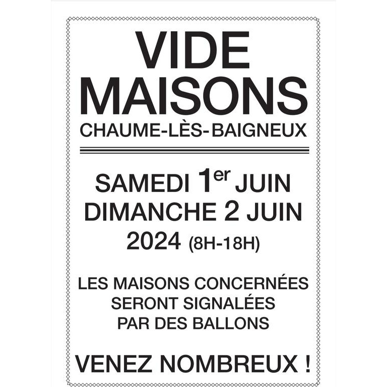 Vide maisons à chaume les baigneux les samedi 1er et dimanche 2 juin 2024, de 8h à 18h.