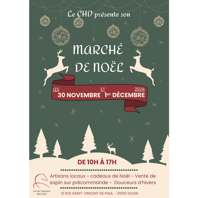 Venir sur le marché de noël du cercle hippique dijonnais, c'est se mettre tout doucement dans l'ambiance féérique et chaleureuse des fêtes de fin d'année. Nous vous proposons de vous réchauffer autour d'une soupe de potimarron et d'un vin chaud tout en visitant les stands de nos exposants pour glaner des idées cadeaux.