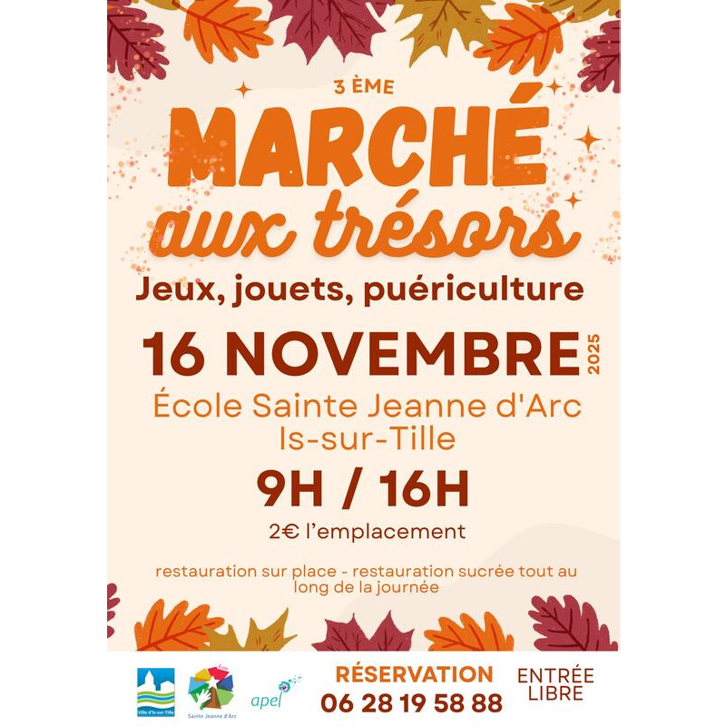 L’école jeanne d’arc organise son 3ᵉ marché aux trésors, dédié au monde de l’enfant : vêtements, jouets, livres, accessoires de puériculture… vous souhaitez acheter et donner une seconde vie aux trésors des enfants ? Rendez-vous le dimanche 16 novembre à partir de 9h, à l’école sainte jeanne d’arc. Pour le déjeuner, nous aurons le plaisir d’accueillir la ferme d’etaules, qui proposera une restauration simple et savoureuse. Et tout au long de la journée, vous pourrez déguster un en cas sucré, un café ou un chocolat chaud dans une ambiance conviviale nous vous attendons nombreux pour partager ce moment chaleureux !
