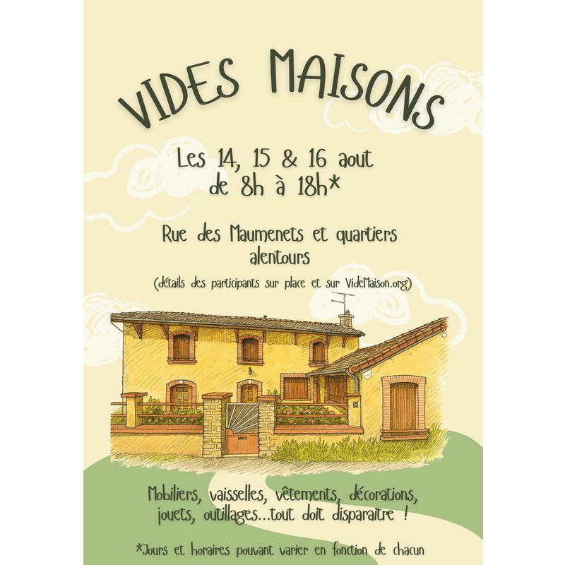 Grand vide maison avec : mobiliers, vaisselles, outillages, vêtements, jouets, décos, etc...