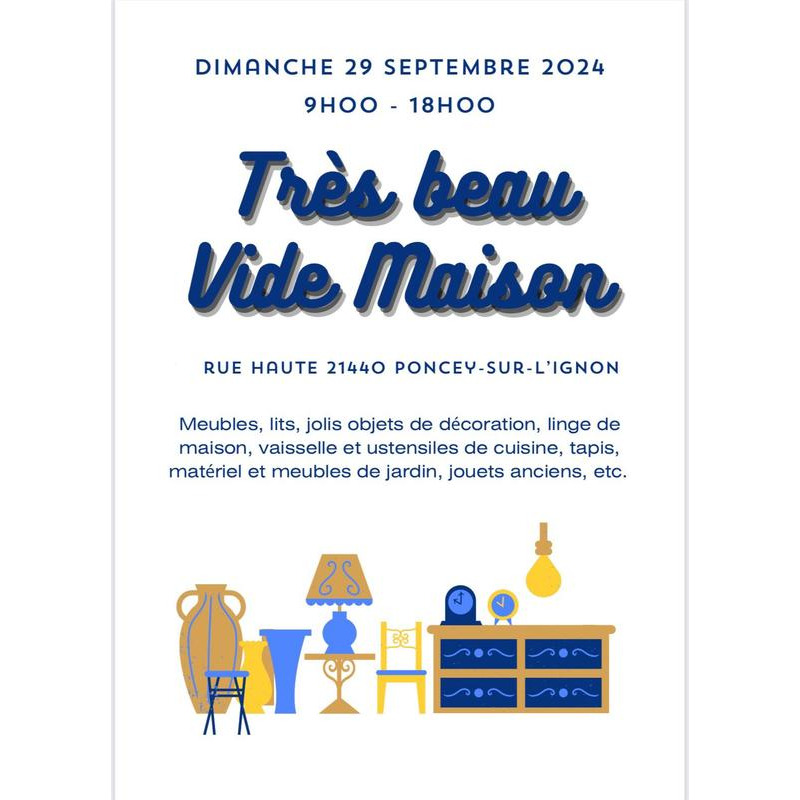 Venez nombreux le dimanche 29 septembre à poncey sur l'ignon pour chiner à l'occasion de ce beau vide-maison!