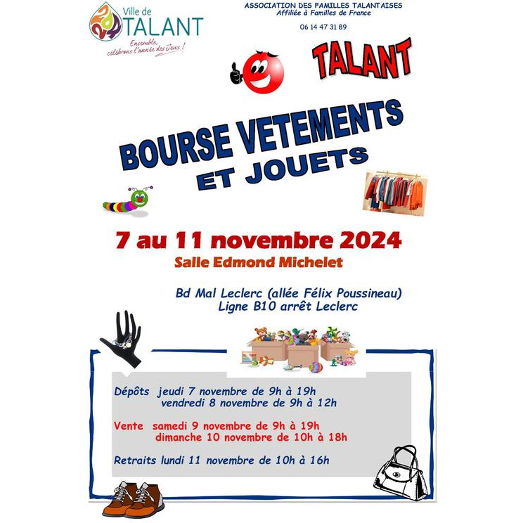 L'association des familles talantaises organise sa bourse aux vêtements et aux jouets du 7 au 11 novembre.