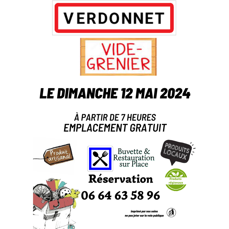 Vide-grenier produits régionaux le 12 mai 2024 buvette et restauration sur place carte bancaire acceptée