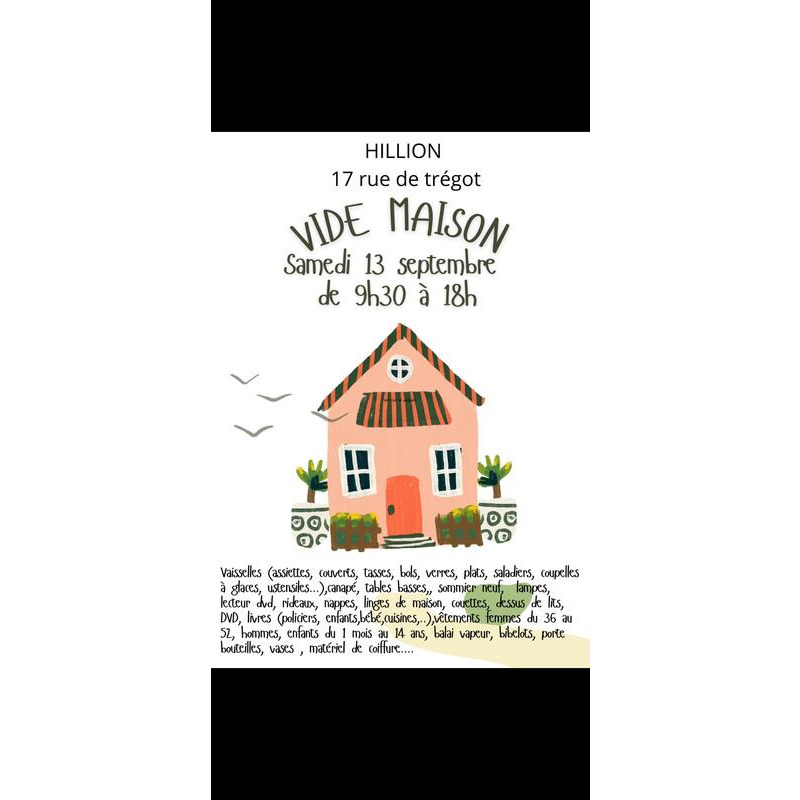 Vide maison à hillion de 9h30 à 18h le samedi 13 septembre, au 17 rue de trégot 22120 hillion