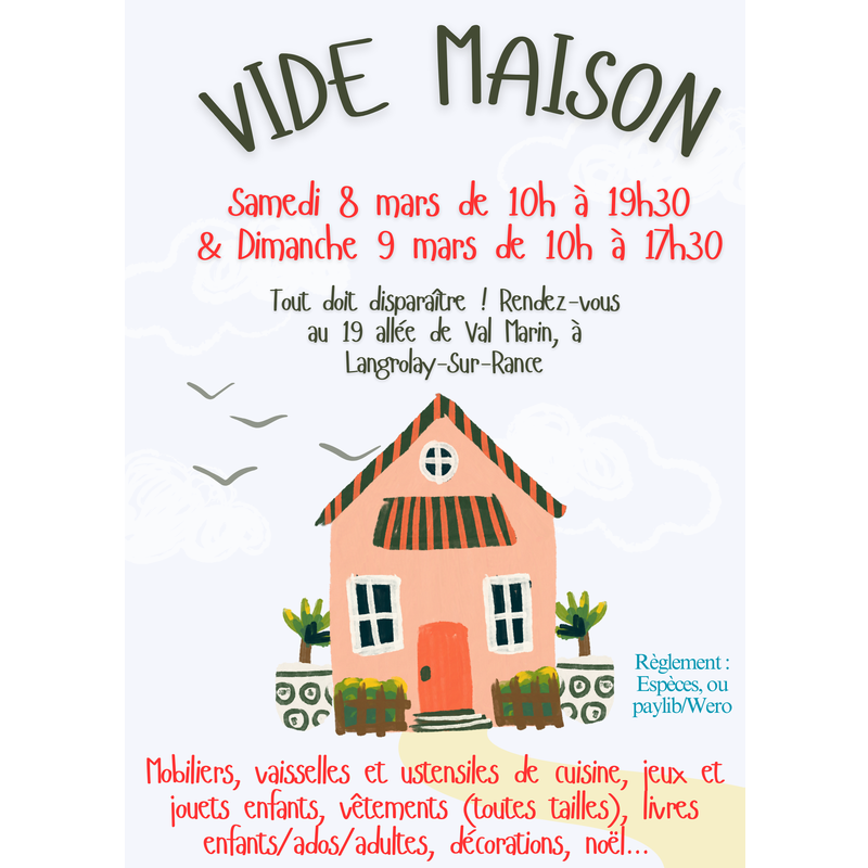 Vente de mobiliers, jeux et jouets, livres, vaisselle,...