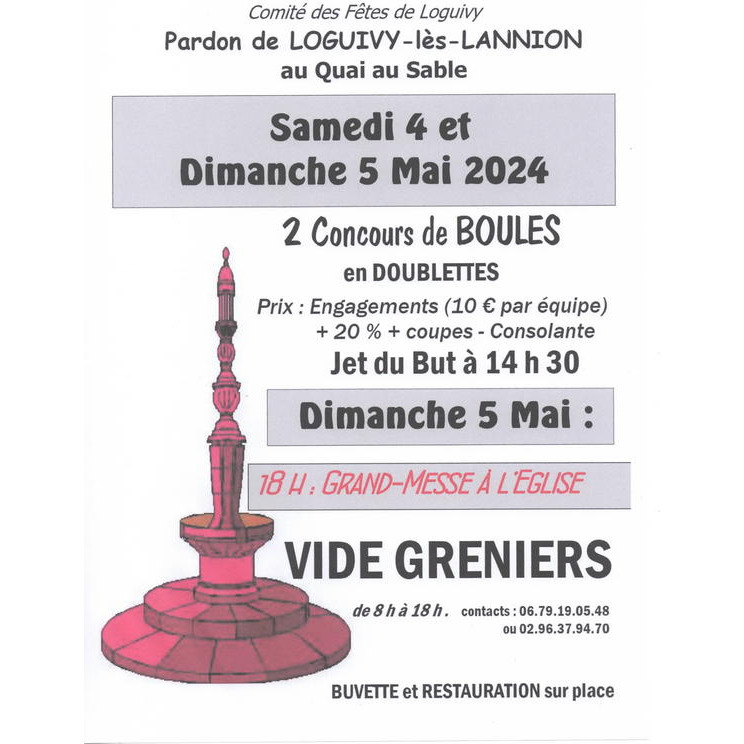 de 08h00 à 19h00 - réservation obligatoire, extérieur, toilettes, accès handicapés, fête communale, buvette, restauration sur place, exposants en alimentaire refusés - 3 €/m - comité des fêtes de loguivy-les-lannion - 02 96 37 94 70 (heure de repas) - 06 79 19 05 48 journée