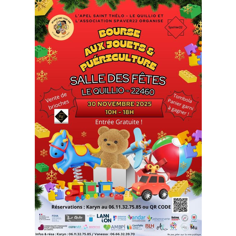 L'association spaver22 et l'apel rpi st thélo/le quillio organise une bourse aux jouets & puériculture. Buvette et tombola. Panier garni à gagner. Vente de brioches.