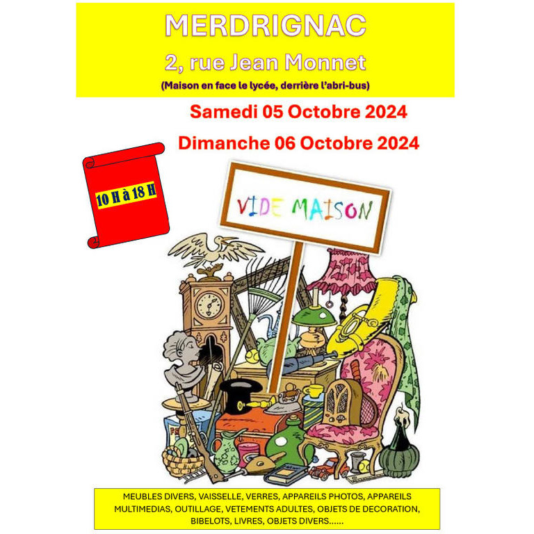 Vide maison sur 2 jours de 10h à 18 h les samedi 05 octobre et dimanche 06 octobre 2024.