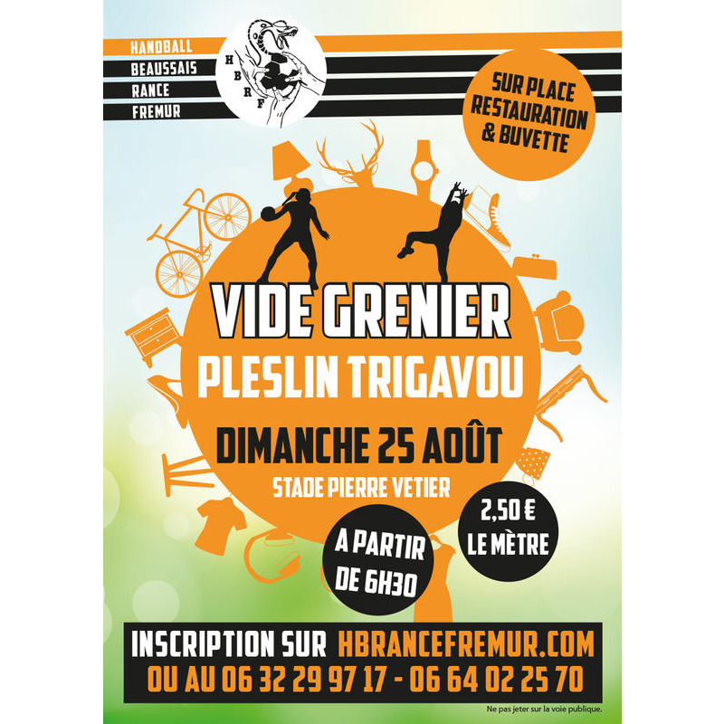 Le handball beaussais rance frémur, présent sur pleslin, plouër organise son traditionnel vide grenier du dernier dimanche du mois d'août.