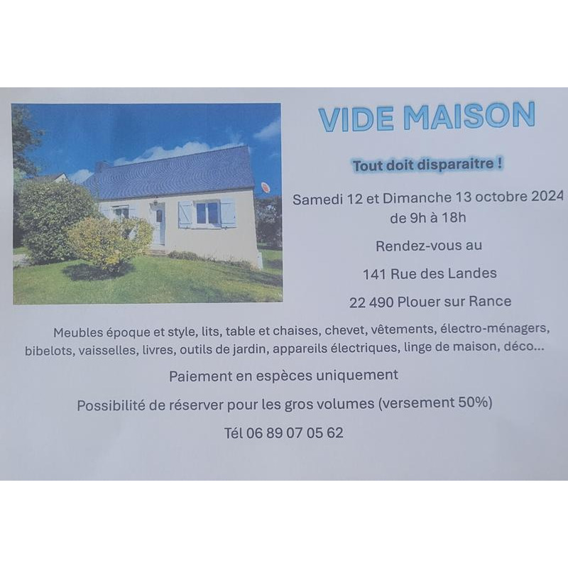 bibelots, vaisselles, livres, outils de jardin, appareils électriques, linge de maison, déco...
