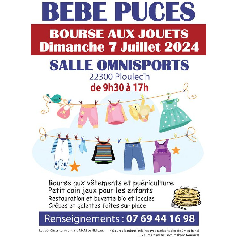 Bébé puces (0-16ans) et bourse aux jouets 7 juillet 2024 à la salle sports de ploulec'h !!!!!!!!