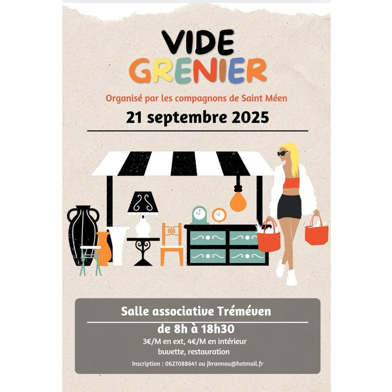 Vide grenier organisé par les compagnons de saint méen pour la restauration de l'église. Petite restauration, buvette