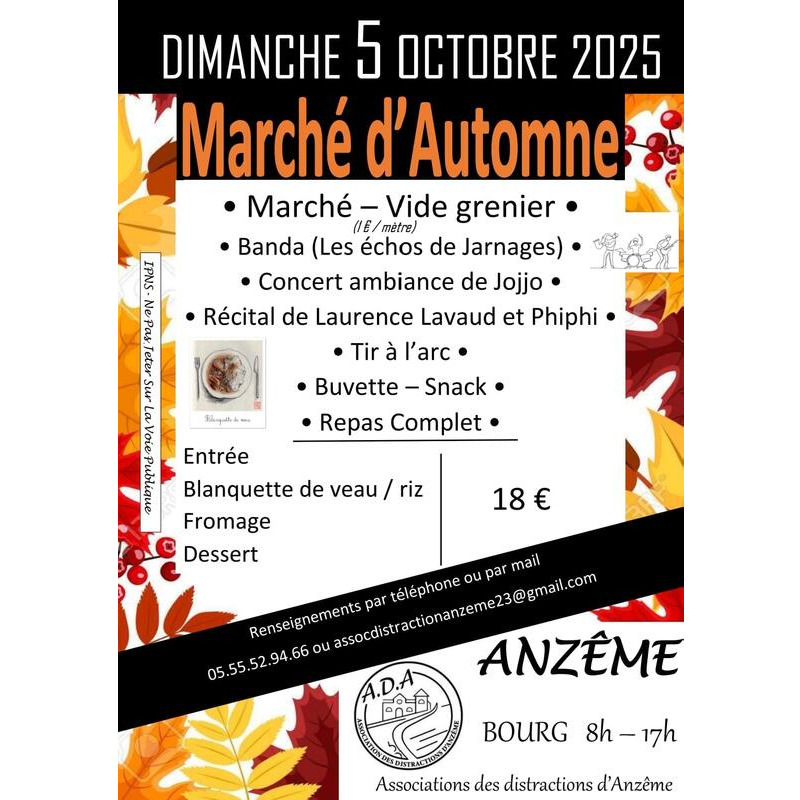 Marché d’automne/vide grenier organisé par l’ada le dimanche 5 octobre 2025.