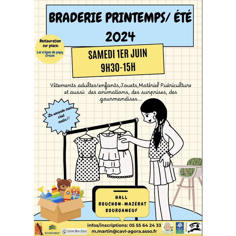 braderie vêtements adultes/enfants, jouets, matériel puériculture.